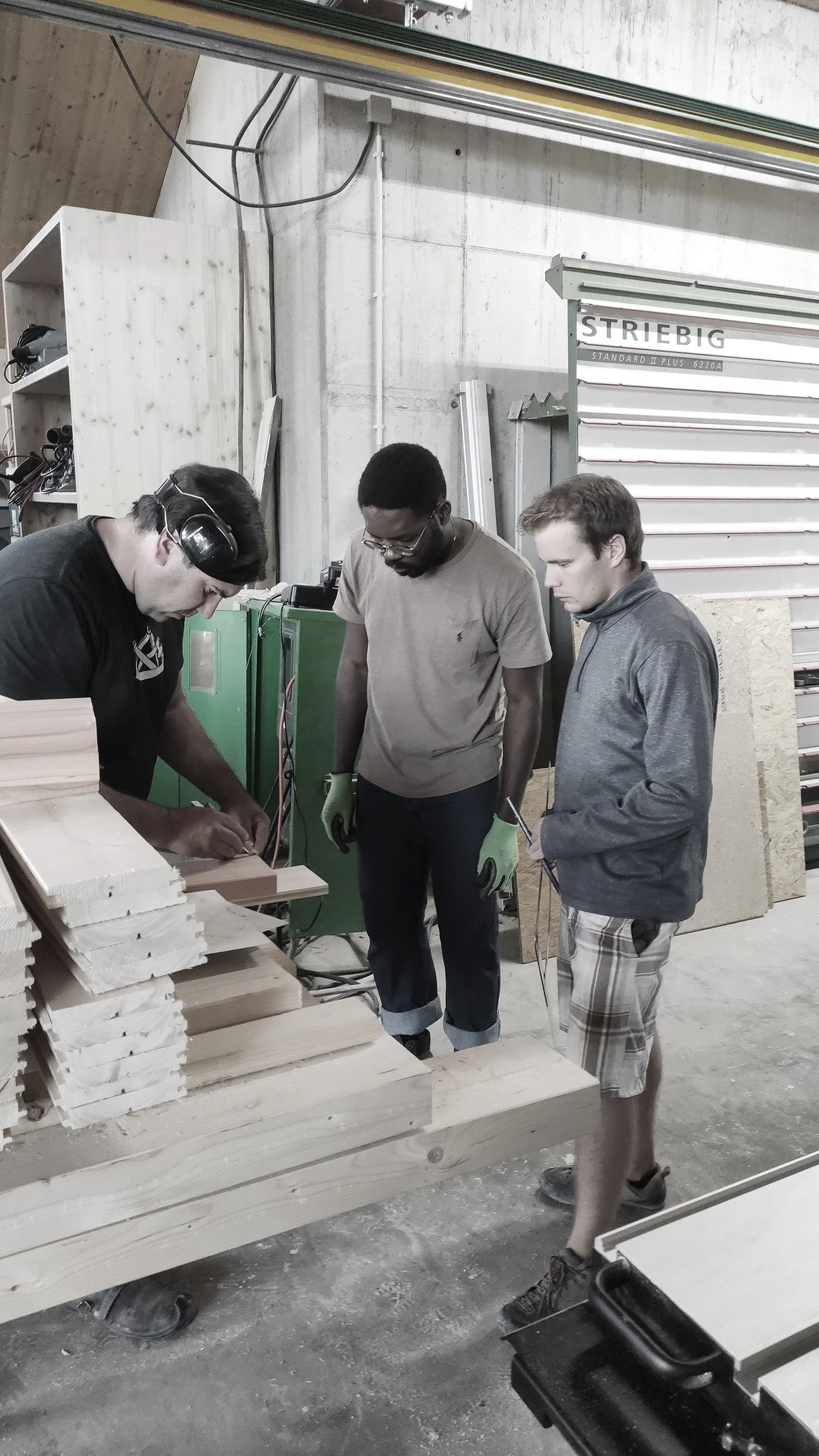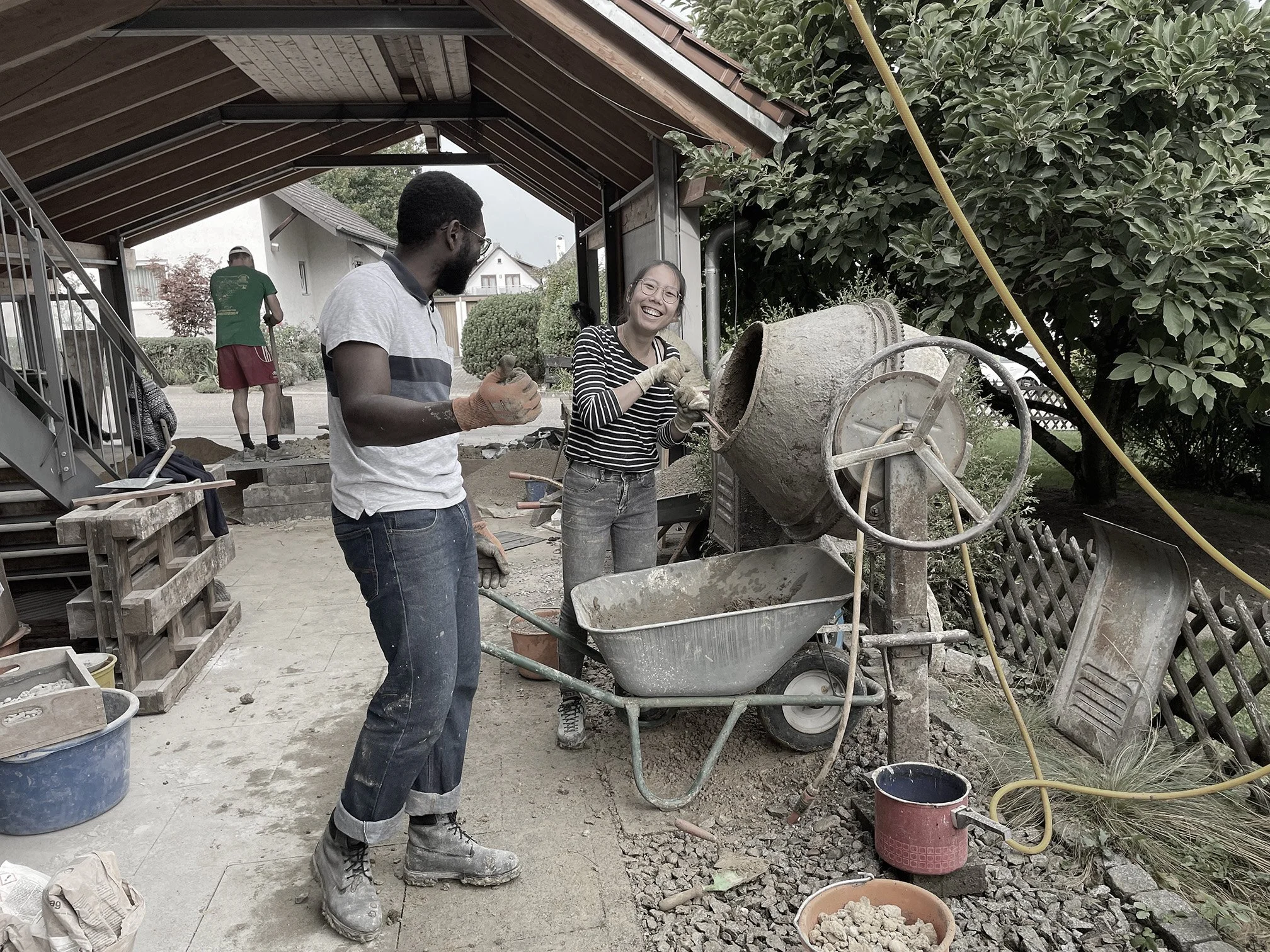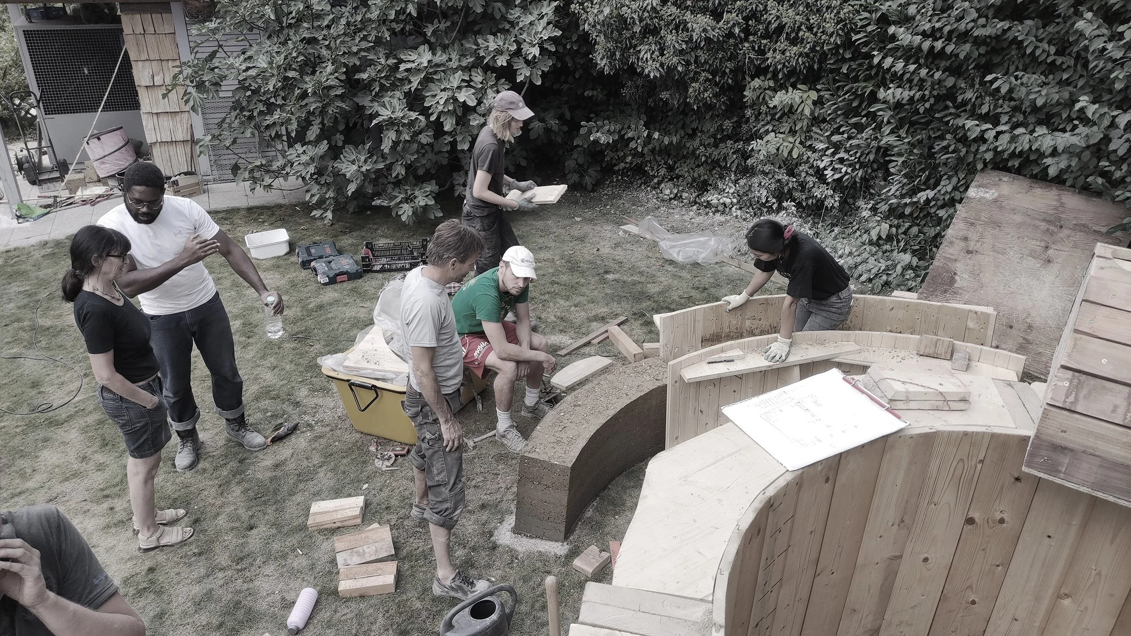 After an introduction to earth building with a focus on the rammed earth technique, various designs were created in a 36 hour competition phase. The winning design was then further processed in close cooperation with rammed earth and oven builders, as well as locksmiths and carpenters from the village.